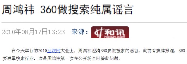 在這場訪談中,周鴻祎還表示絕不會(huì)做搜索