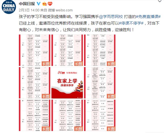 受疫情影響,全國學校延遲開學上課,線下教育培訓機構(gòu)也紛紛暫停課業(yè),這讓面臨升學壓力的中小學生和家長感到萬分焦慮。于是在線教育網(wǎng)站站了出來,不少學校和培訓機構(gòu)采用線上授課的形式為學生提供免費的視頻課程。其中,學而思更是與學習強國聯(lián)手打造了免費直播課,不僅解決了非常時期學生停課不停學的問題,也最大限度地降低了疫情給企業(yè)造成的影響和損失。