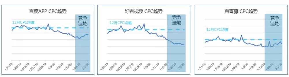 這段時間內(nèi),百度流量持續(xù)增長漲勢較好,同時各流量位資源充足,競爭放緩,整體CPC明顯低于平時,競爭環(huán)境較寬松,利于低成本獲客。傳統(tǒng)中小企業(yè)可以抓住這個時間窗口,根據(jù)預(yù)算合理進(jìn)行廣告投放,實(shí)現(xiàn)營銷線上化,在線上尋找新的商機(jī)。