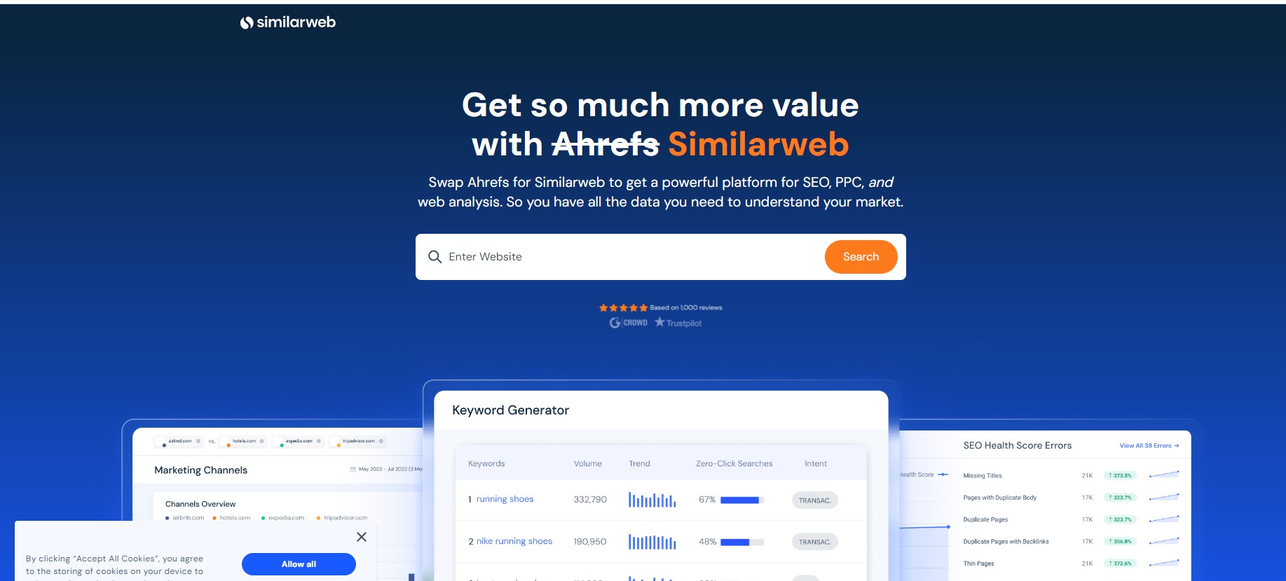 特點(diǎn) 這是一個(gè)綜合性的SEO工具,功能涵蓋關(guān)鍵詞研究、網(wǎng)站審計(jì)、競爭對手分析等。 使用方法 關(guān)鍵詞研究:提供詳細(xì)的關(guān)鍵詞數(shù)據(jù),包括搜索量、競爭難度、CPC等。 網(wǎng)站審計(jì):可以全面掃描網(wǎng)站,找出SEO方面的問題,比如加載速度、重復(fù)內(nèi)容等。 競爭對手分析:提供競爭對手的關(guān)鍵詞排名、廣告策略等數(shù)據(jù),幫助你制定更有針對性的SEO和SEM策略。