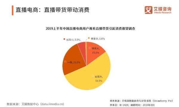 根據(jù)艾瑞咨詢的調(diào)查數(shù)據(jù)顯示,超過一半的受訪用戶認(rèn)為,直播帶貨能引起他們比較大的消費(fèi)欲望。
