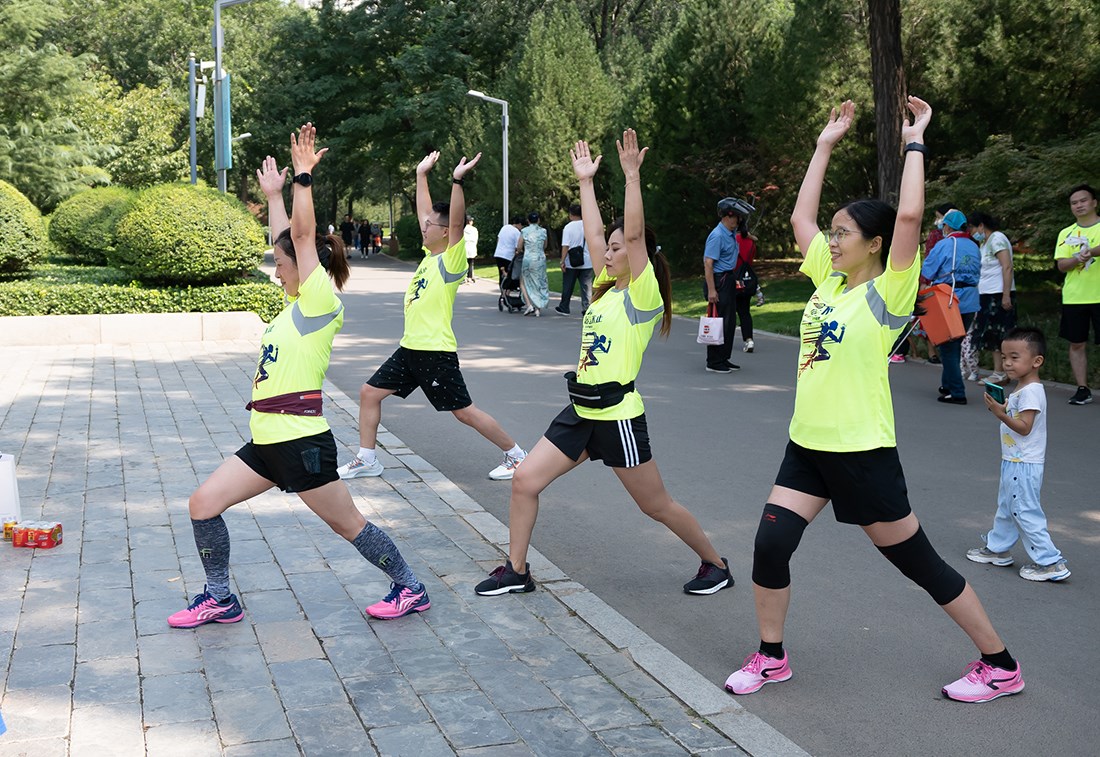 比賽開始前,興田健兒們認(rèn)真拉伸,以期在稍后的比賽中取得好成績。