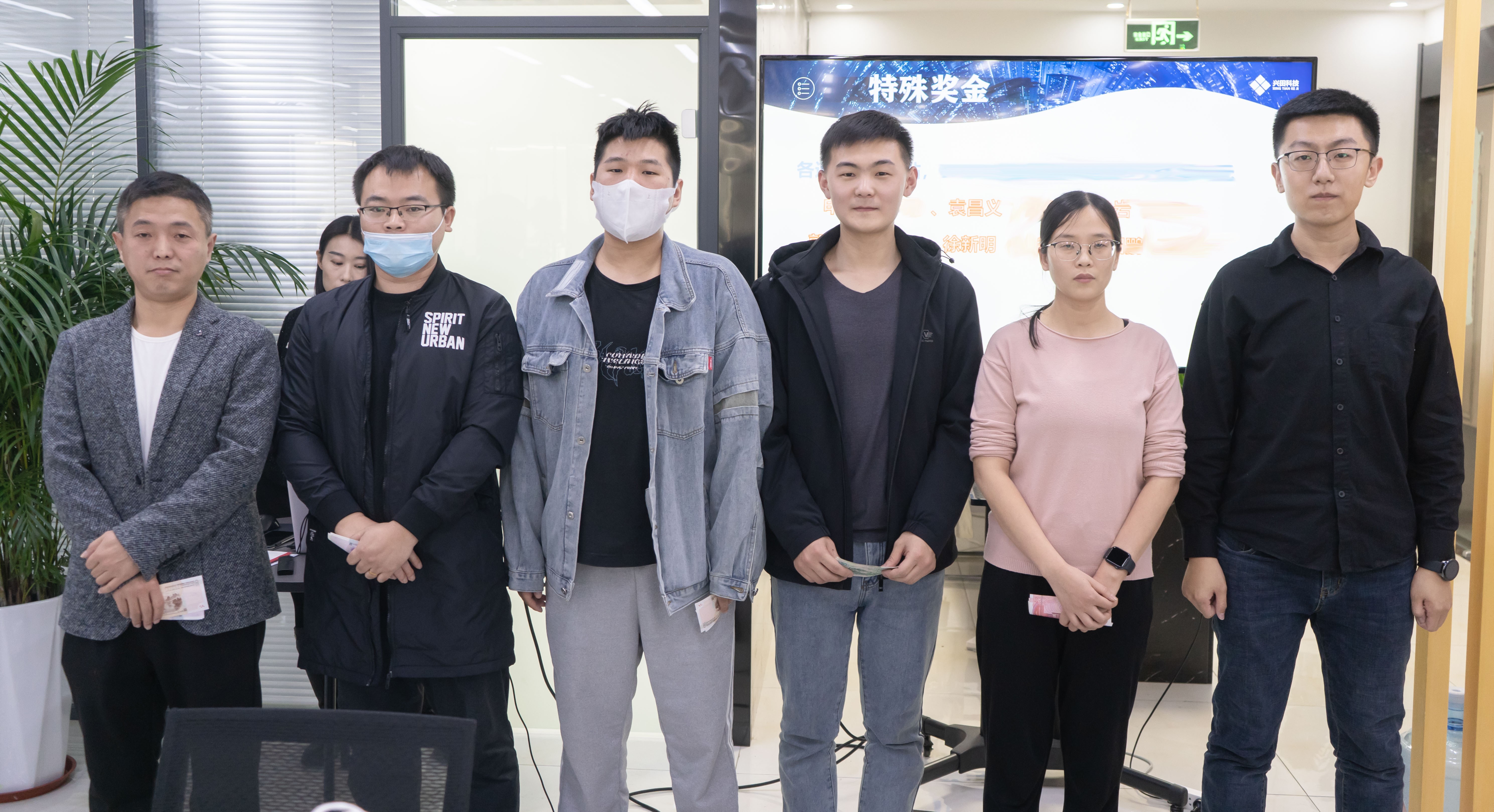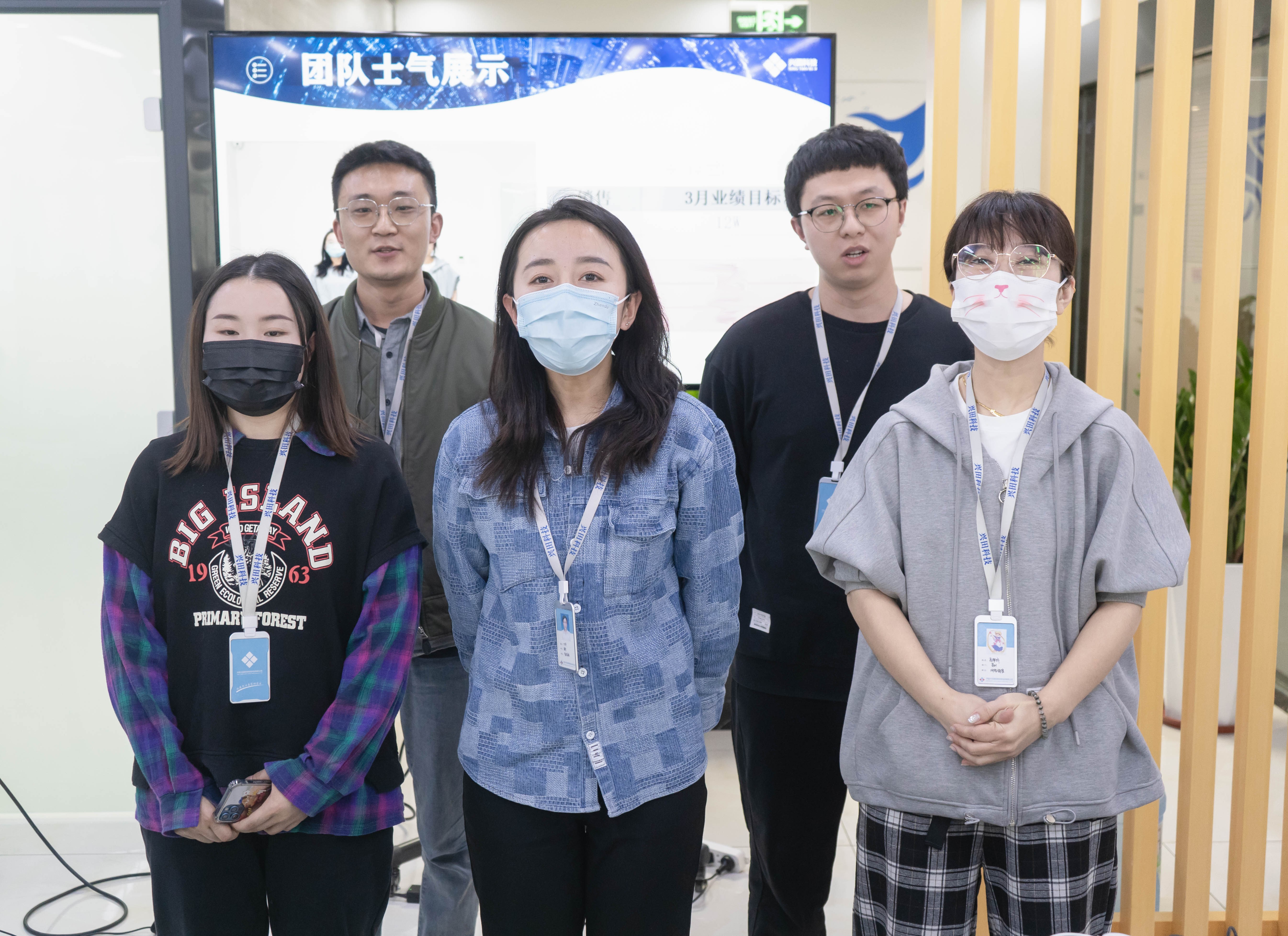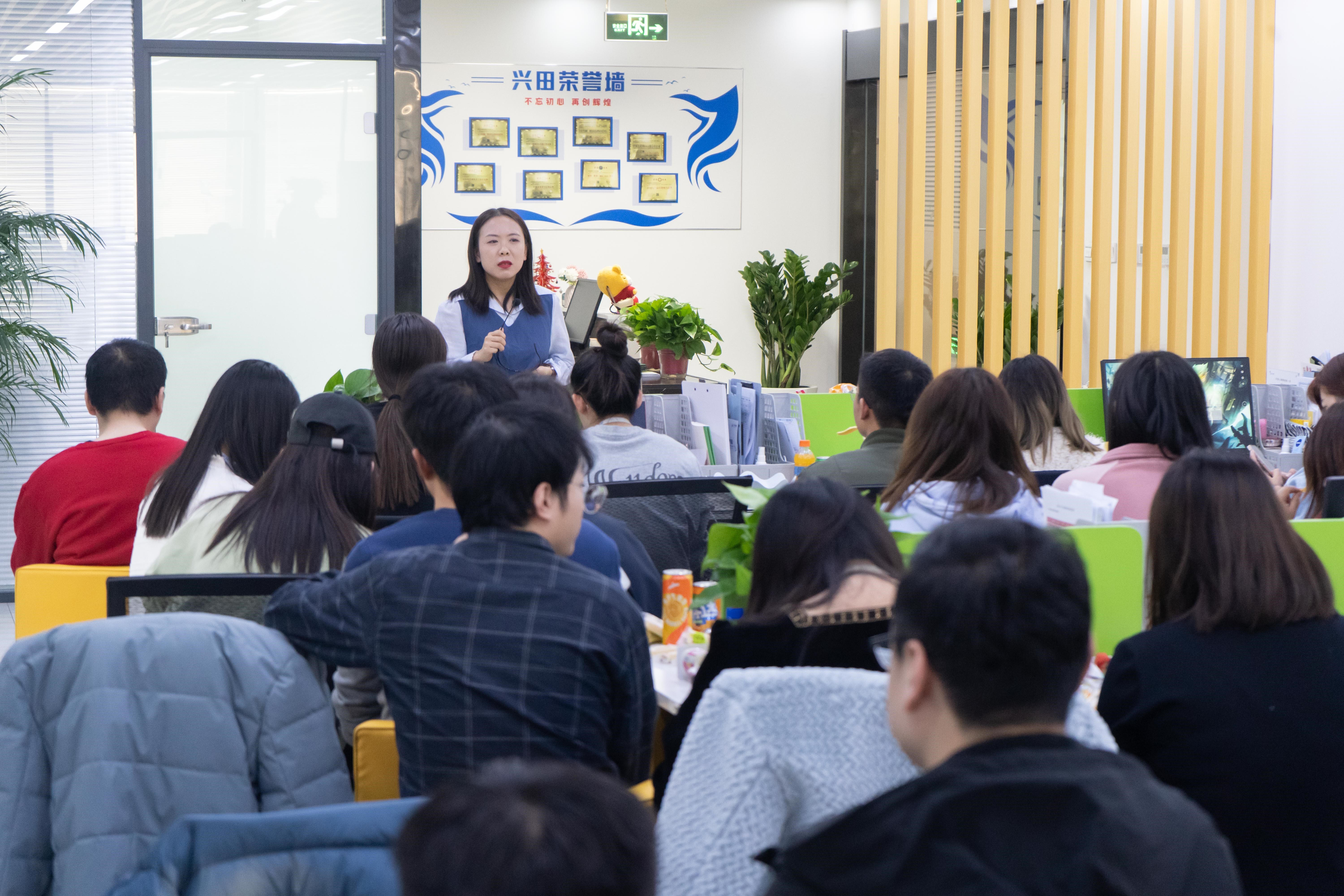 會(huì)議第一項(xiàng)是團(tuán)隊(duì)士氣展示,各個(gè)部門的小伙伴們上臺(tái)展現(xiàn)出自己自己團(tuán)隊(duì)的士氣與風(fēng)采。會(huì)議第二項(xiàng)是新員工入職儀式,上個(gè)月一共入職了7位小伙伴,各位的加入為興田注入了新鮮血液,增添了新生力量。