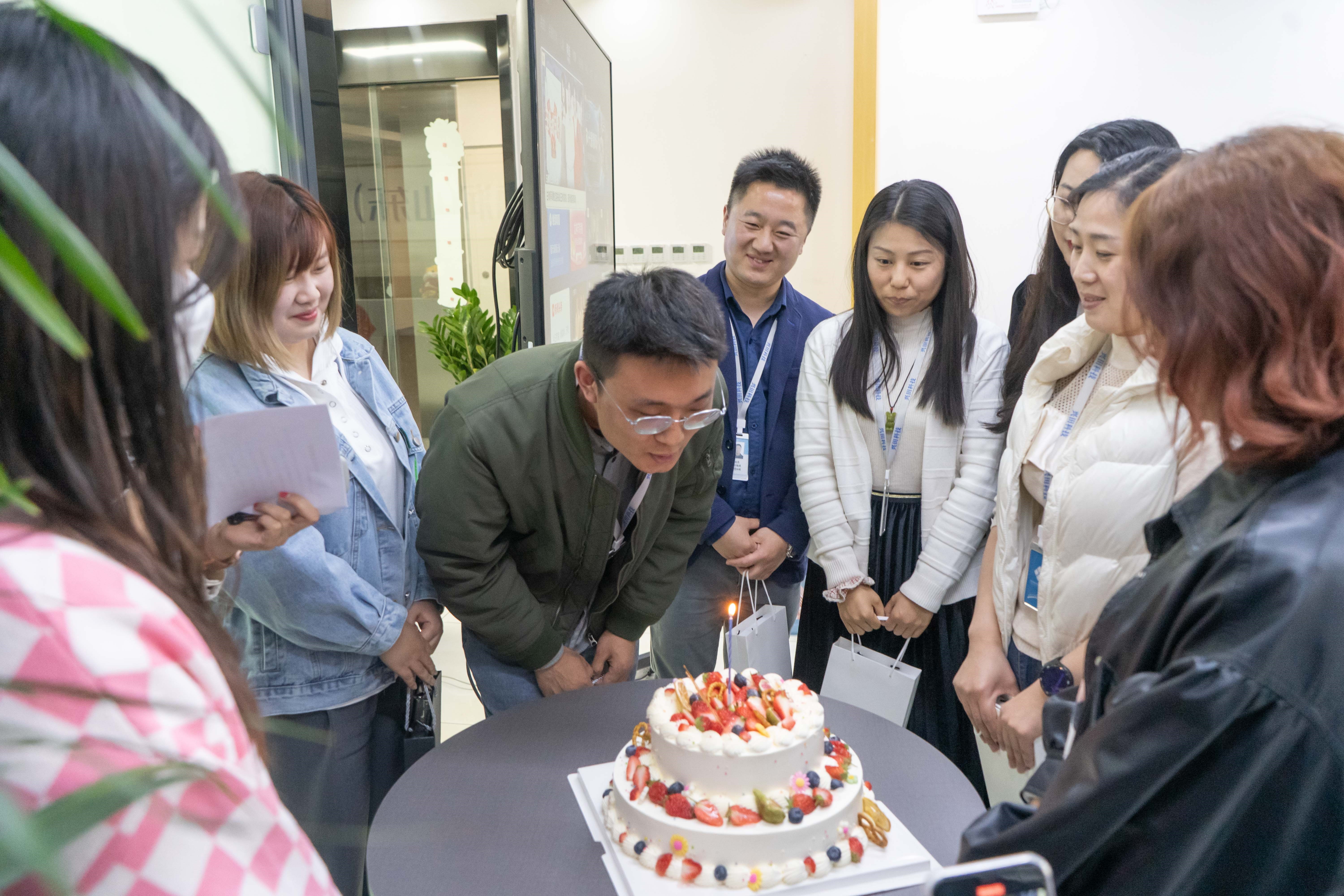 會(huì)議最后一項(xiàng)是員工生日大會(huì),公司貼心的為各位過生日的小伙伴準(zhǔn)備了生日禮物和生日蛋糕,送上了滿滿的祝福。